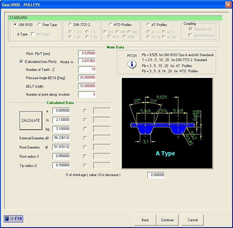 Using Free Type option is possible to insert data to create a pulleys different from than standard ones.