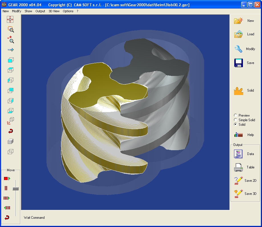 Example: pump with 3 screws of 2 lobes